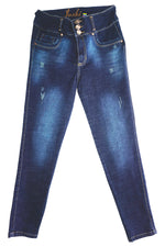 Jean tres botones azul para mujer, este jean se ajusta a las curvas de tu cuerpo haciendote lucir una figura estilizada y un corte ajustado en la cadera