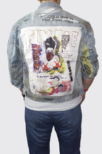 Chaqueta de jean con desgaste y estampados en frente y espalda